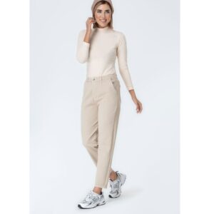 شلوار مام فیت کتان پشت کمر کش قد 95 کرم
