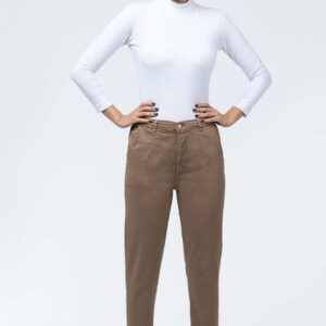 شلوار مام فیت کتان گردویی