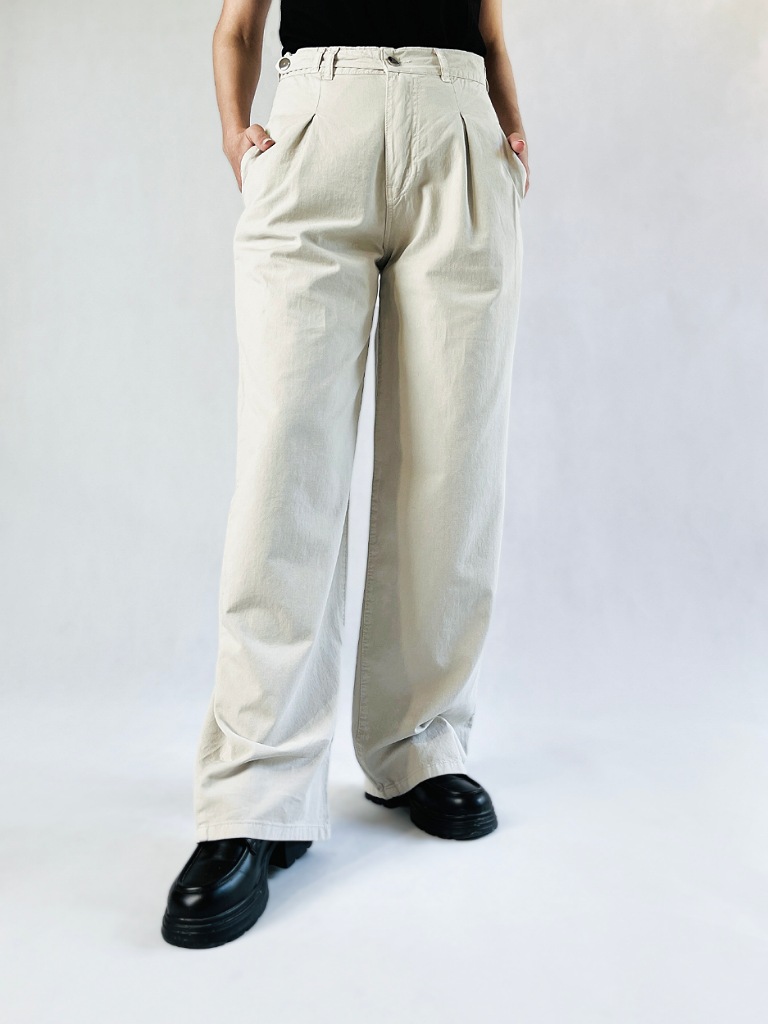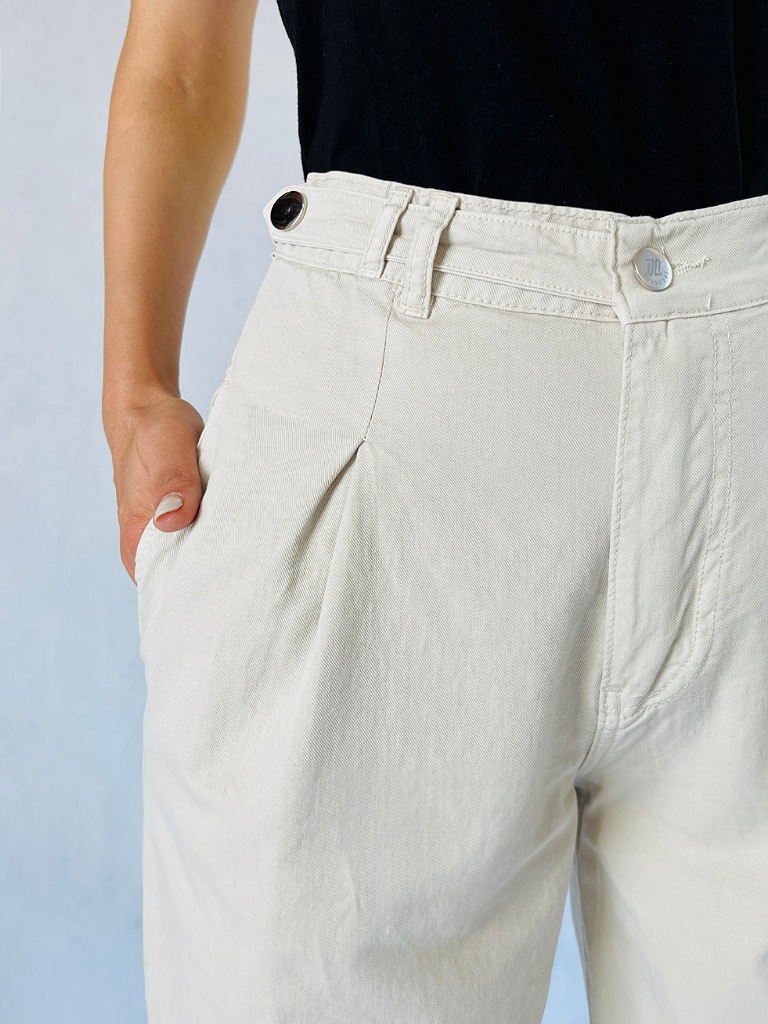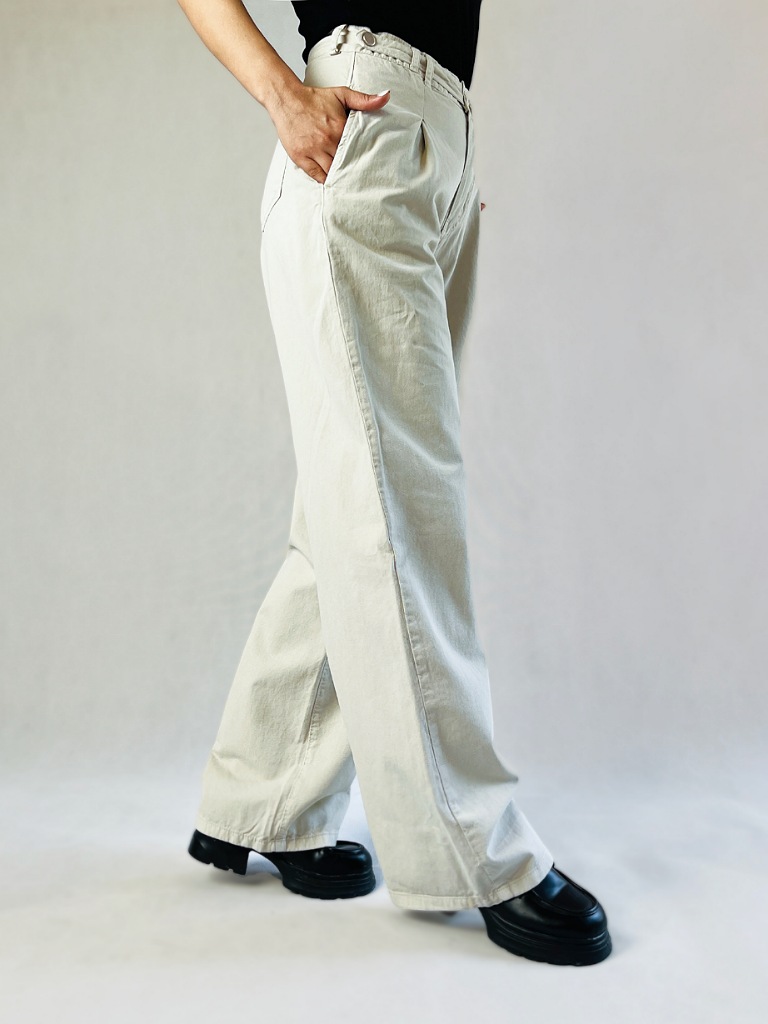 شلوار نیم بگ کاغذی کتان پیلی دار