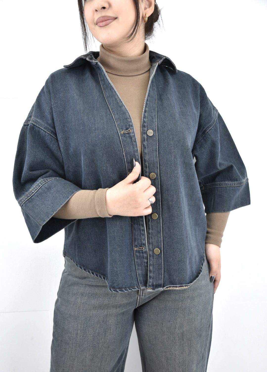 شومیز جین آستین سه ربع دخترانه ذغالی