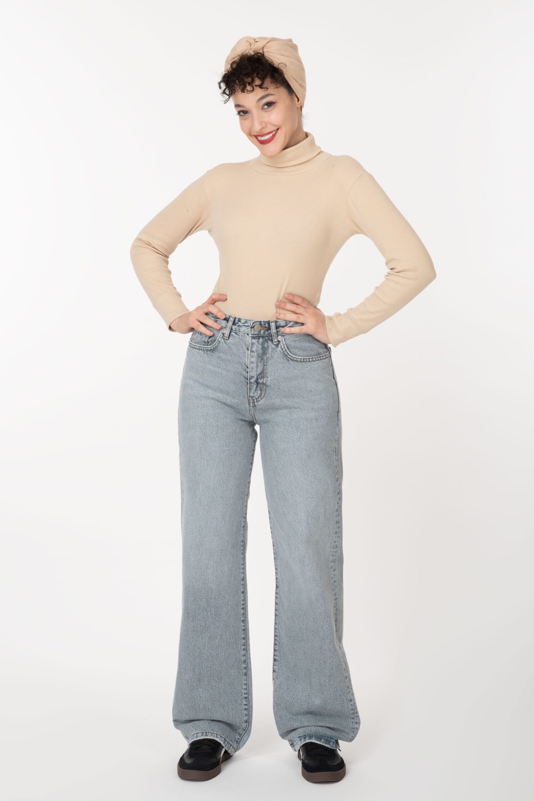 شلوار جین نیم بگ آبی یخی دخترانه زنانه رویال